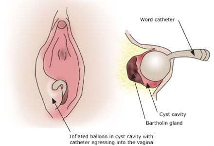 Bartholin cysts and abscesses, which are traditionally treated by marsupialisation under general anaesthesia, can now be effectively treated using only local anaesthetics with the insertion of a Word catheter.